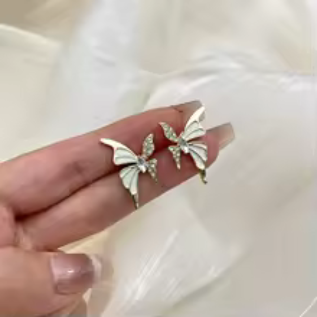 Encante-se com a leveza e o brilho dos Brincos Butterfly Crystal Gold – Borboleta Esmaltada Branca com Asas em Cristal. Inspirados na delicadeza das borboletas e na elegância do estilo coreano vintage, esses brincos unem esmalte branco sofisticado com cristais luminosos em acabamento dourado.