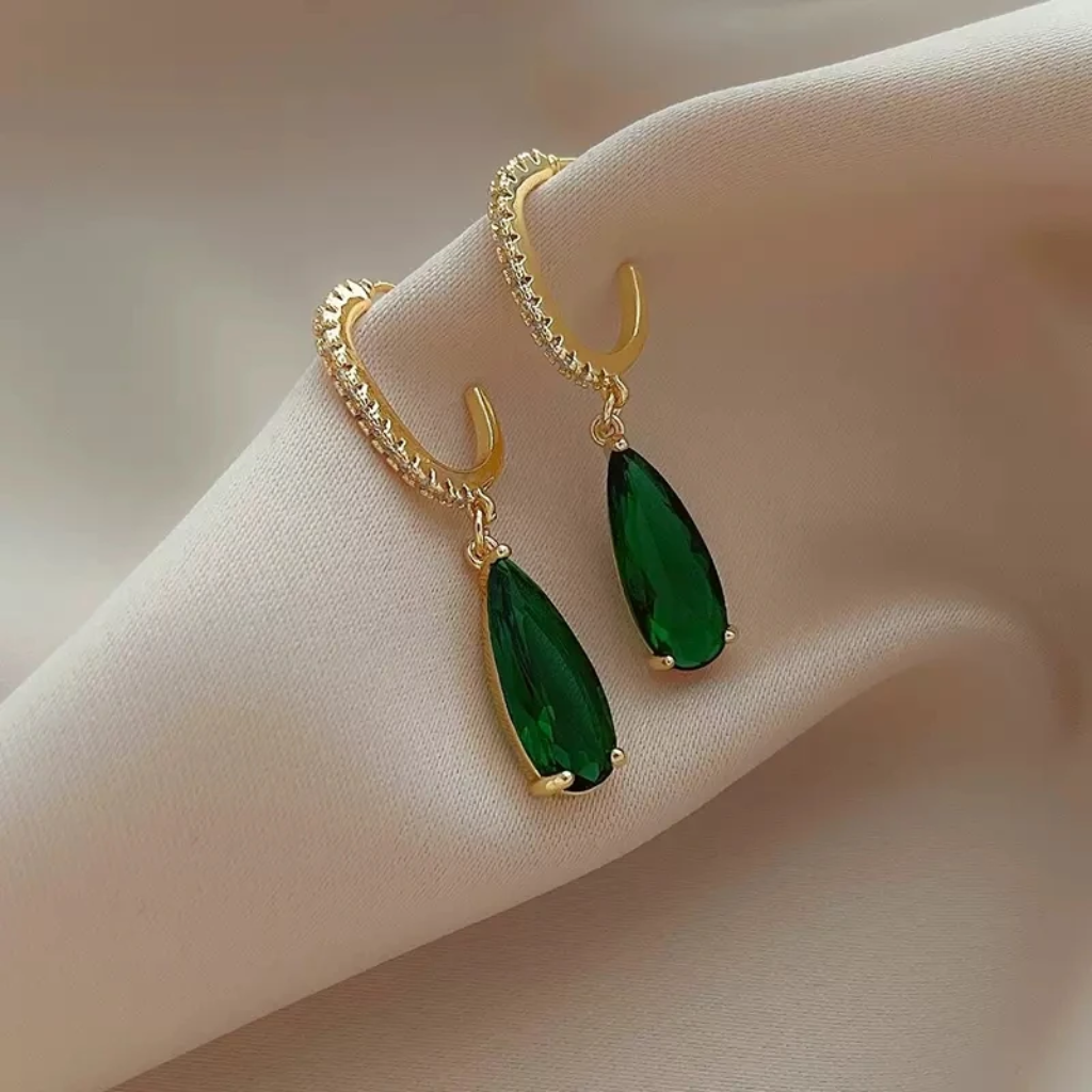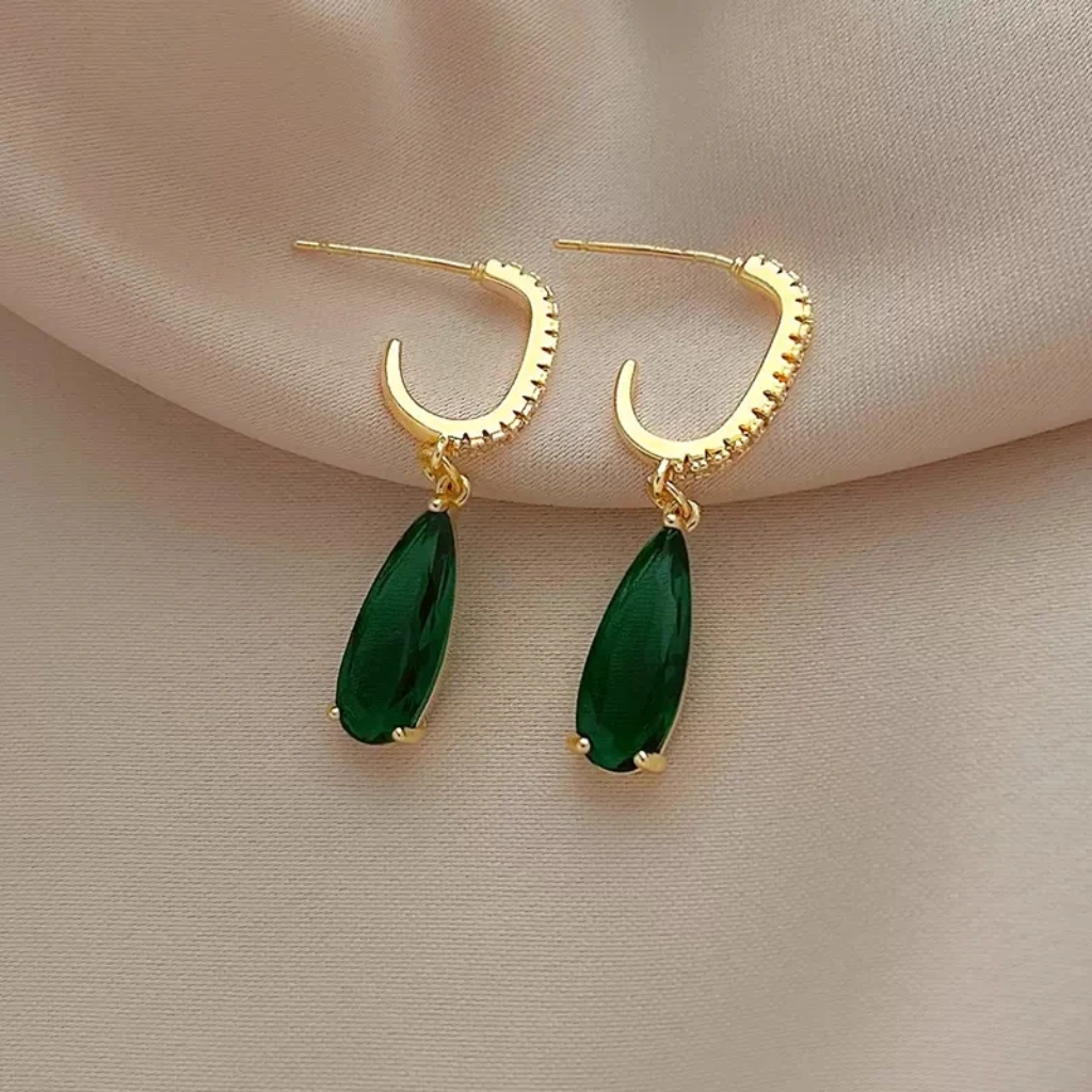 O acabamento em tom dourado elegante combinado com o brilho da pedra verde proporciona um estilo marcante e feminino, ideal para realçar qualquer look — desde produções sofisticadas para eventos especiais até combinações elegantes para o dia a dia no trabalho.