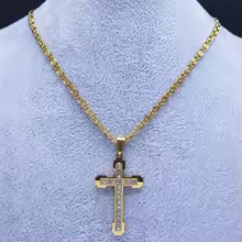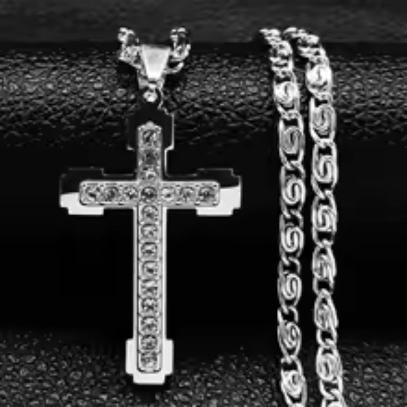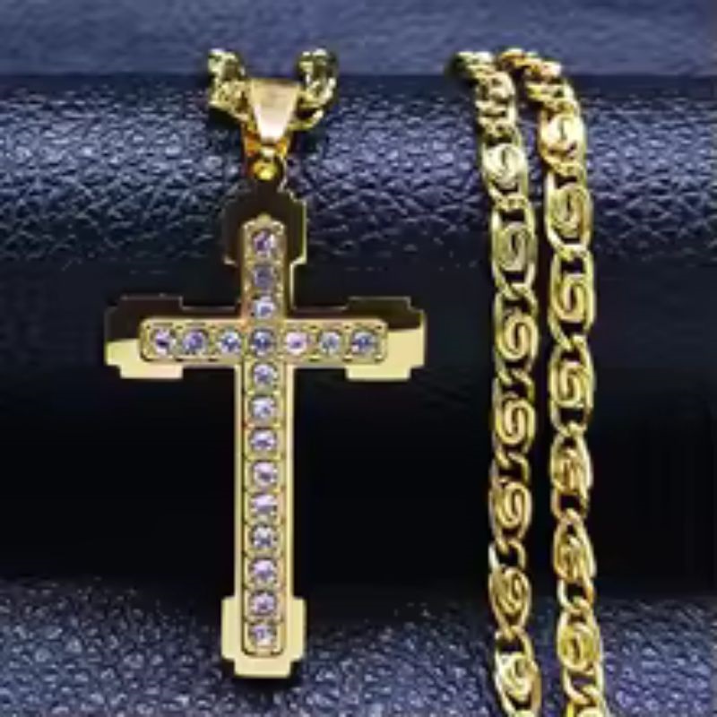Garanta agora o Colar Cruz Luxo em Aço Inoxidável – Zircão Brilhante Unissex e destaque-se em qualquer ocasião. 🛒