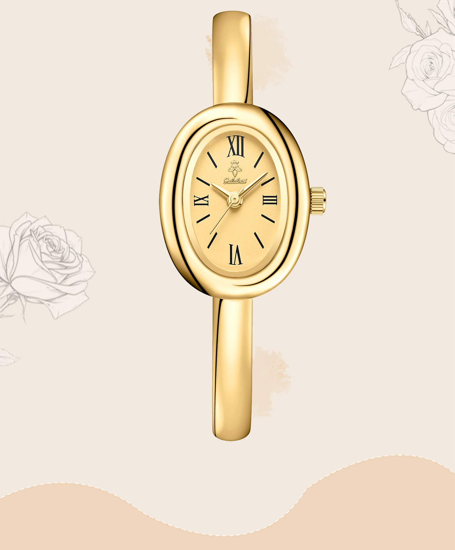 Seu mostrador clean com exibição sem números transmite um estilo contemporâneo e versátil, ideal para compor looks do dia a dia ou ocasiões especiais. A caixa oval delicada e a pulseira em liga proporcionam um ajuste confortável e um visual luxuoso.